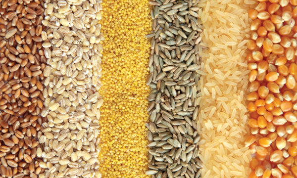 celozrnná ryža (25), jačmeň (22), pšenica (20), špalda (20), ovos (20), pohánka (16), kukurica (14), raž, cirok